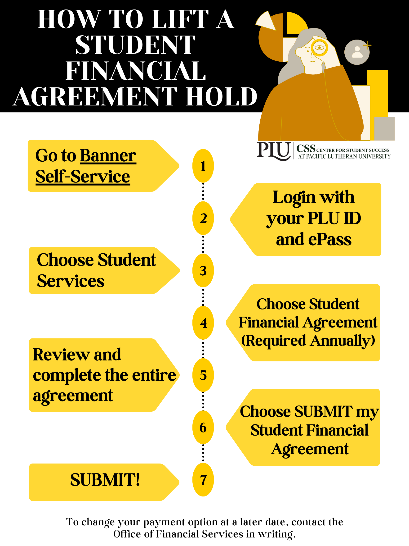 To change your payment option at a later date, contact the Office of Student Financial Services in writing.