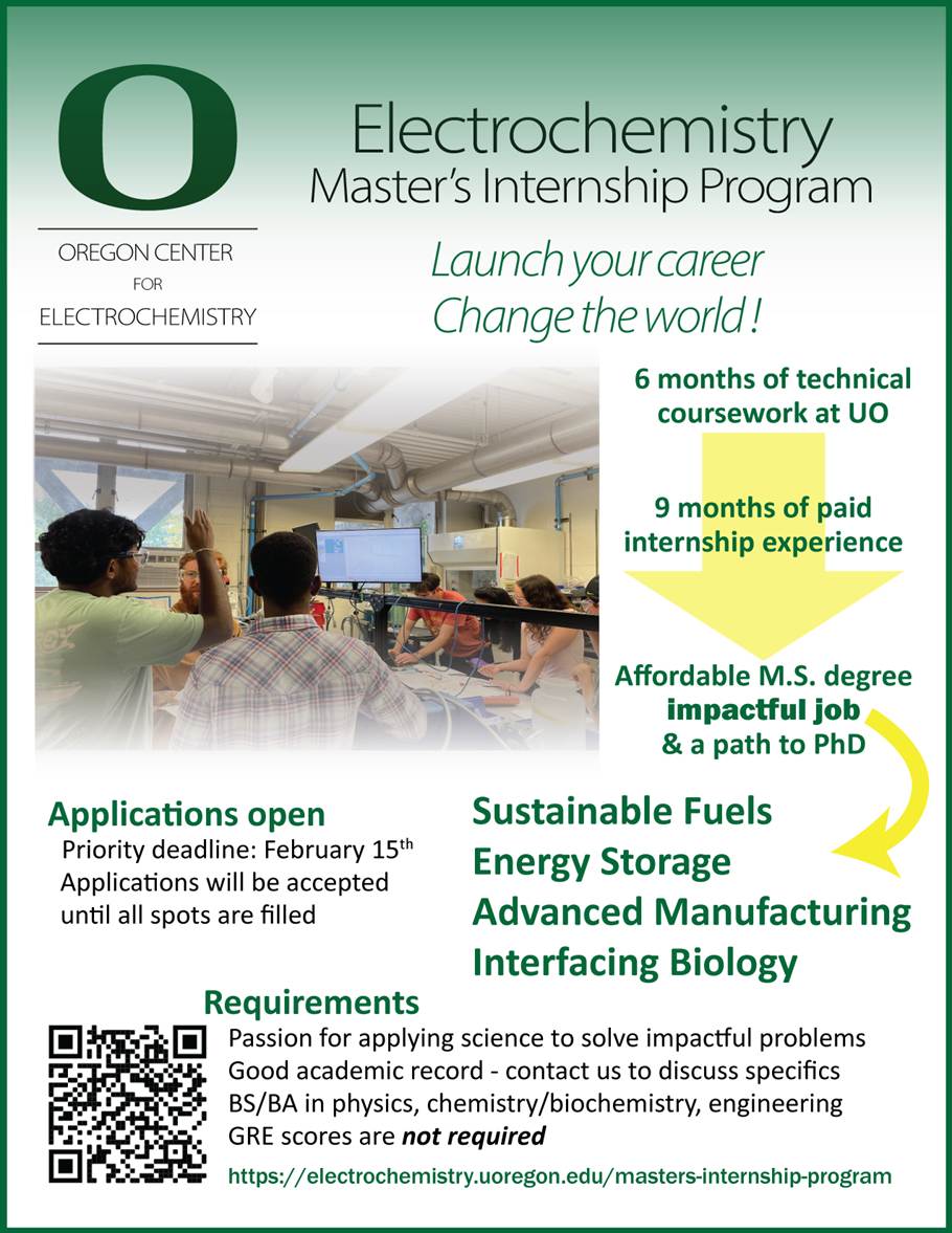 A few additional highlights about the Electrochemistry Master’s Internship Program: