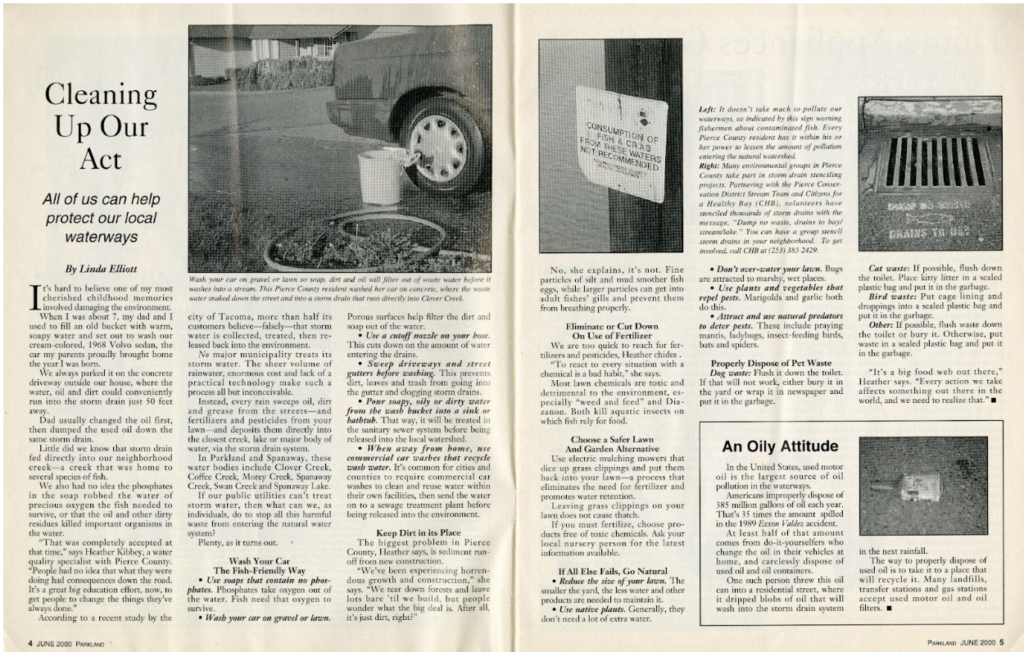 On the other hand, the Chambers-Clover Creek watershed still faced high volumes of pollution and degradation. Featured in the Parkland Ruralite were ways to help maintain healthy streams.