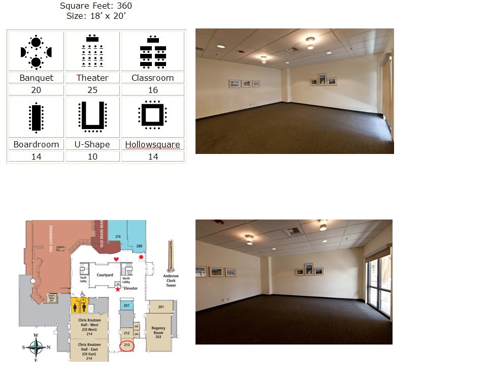 | **Executive Meeting Rooms | Anderson University Center 213 | 14 | Seminar Room |