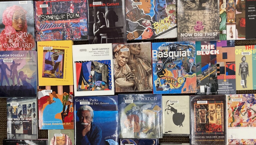 Black Art Matters uplifts the diverse contributions of Black visual artists working a variety of mediums. Art as a creative expression examines history, contemporary life, and the future by documenting lived experiences; engaging social commentary, protest and social justice; surfacing uncomfortable histories; exploring emotion; creating parodies; and embracing new ways of representing ideas. The Black artists’ work in this exhibit of library books display the range of topics noted above and additional topics such as slavery, Black humanity, and Black pride expressed in a variety of styles and methods.
