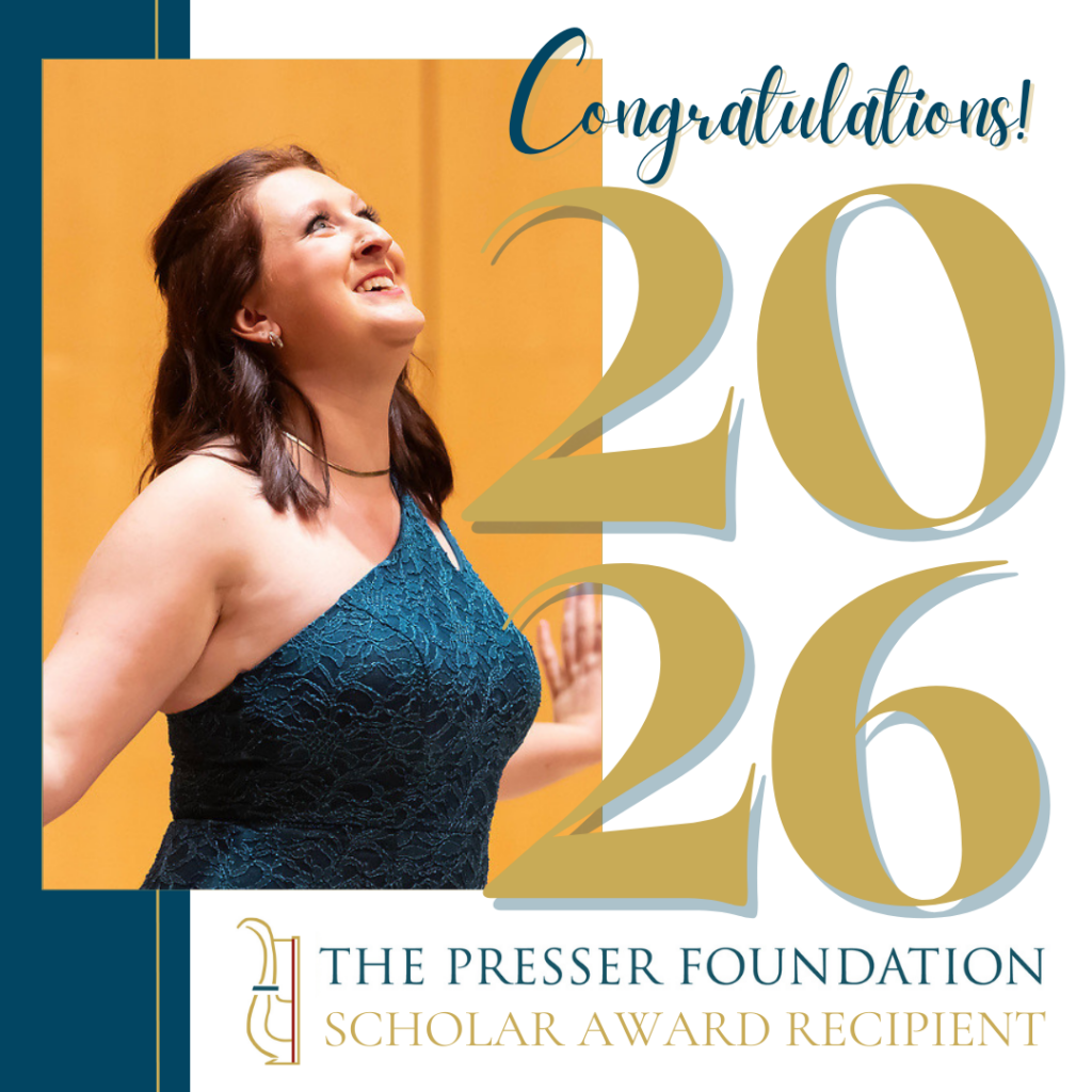 “Emily is a gifted and dedicated young soprano who possesses strong vocal talent, intellectual curiosity, and professional maturity. She is well-rounded, versatile, and collaborative. She has actively sought out and thrived in both professional settings and intensive young artist programs, and been a fantastic leader and mentor for her peers. It is no surprise that the faculty nominated Emily for the prestigious Presser Award,” said Dr. Brian Galante, Associate Dean School of Music, Theatre & Dance.
