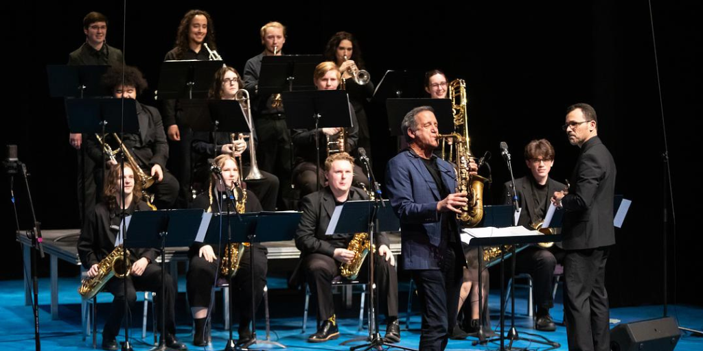 - Performance/clinic: Each school band will perform and receive a 30-minute clinic from two professional jazz educators following their performance on stage