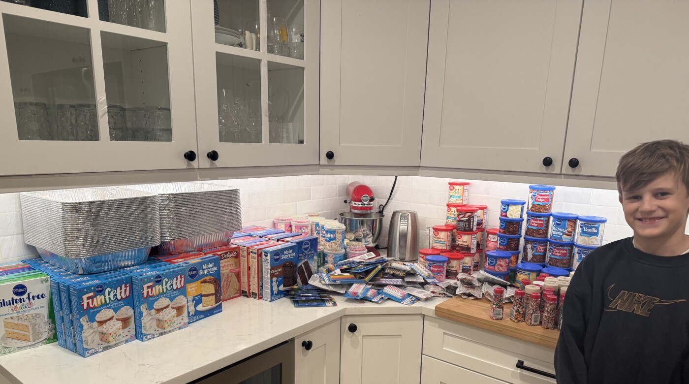 With her son Connor’s birthday approaching, Ellen proposed a different kind of celebration. Instead of gifts, guests were invited to bring cake mix, frosting, and sprinkles. The family would handle the rest. Ellen set a modest goal of 24 kits — 12 for each organization as a nod to Connor’s 12th birthday. By the end of the weekend, Ellen, Connor, friends, and family had assembled 60 cake kits: 20 for the PLU Pantry and 40 for the Puyallup Food Bank. “It made me happy to use my birthday as a way to make sure other kids get to have a birthday cake,” Connor says.
