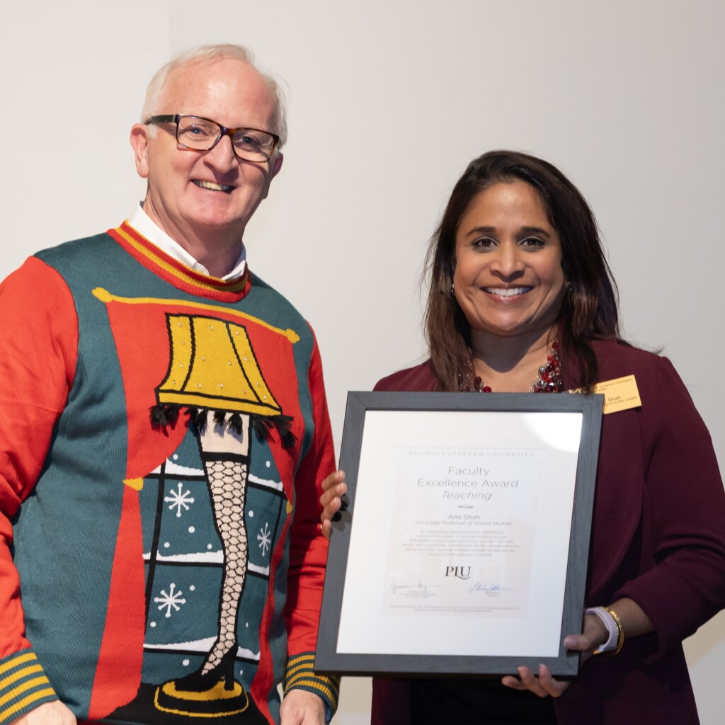 The Faculty Excellence Award in Teaching recognizes faculty who embody a commitment to excellence in their ability to communicate knowledge and inspire students. This year, the award is presented to Dr. Ami Shah, Associate Professor of Global Studies.