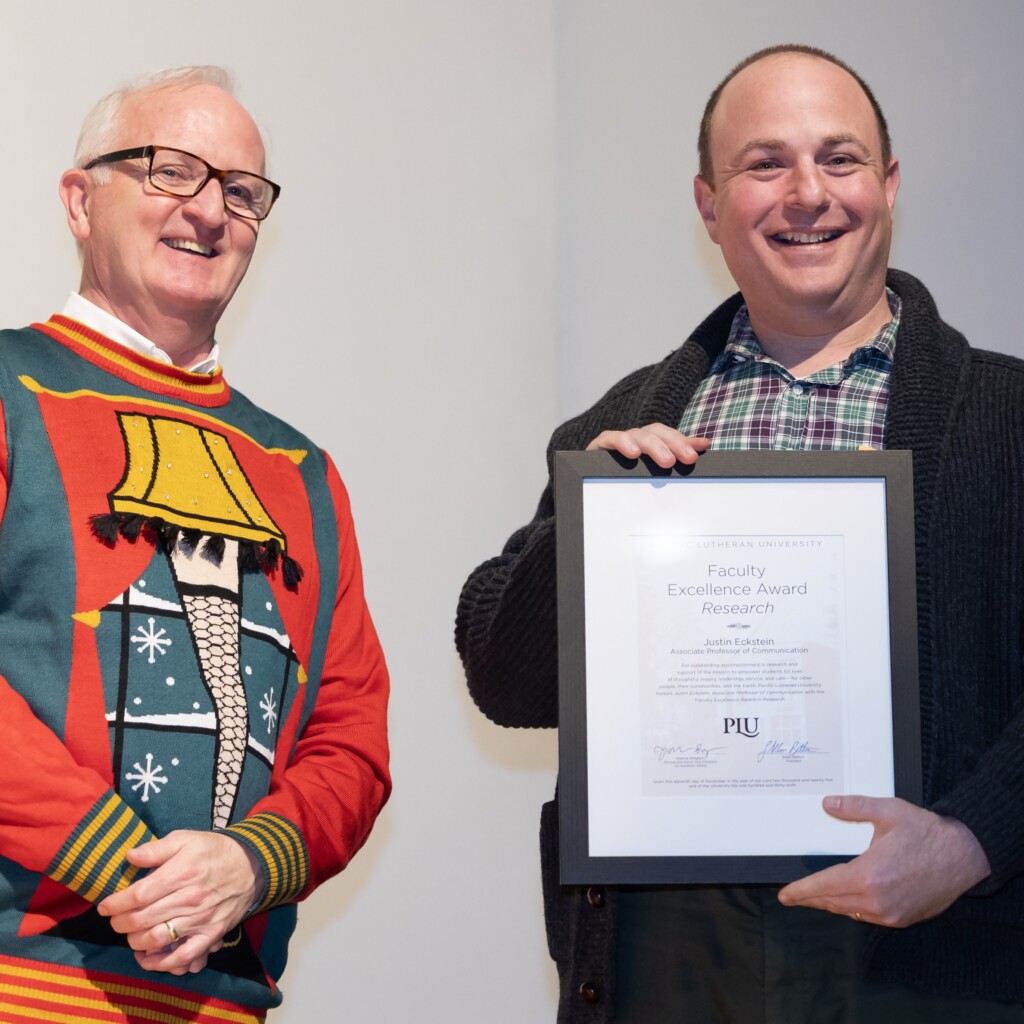 This year, we honor two colleagues, Dr. Jessica Sklar, Professor of Mathematics, and Dr. Justin Eckstein, Associate Professor of Communication.