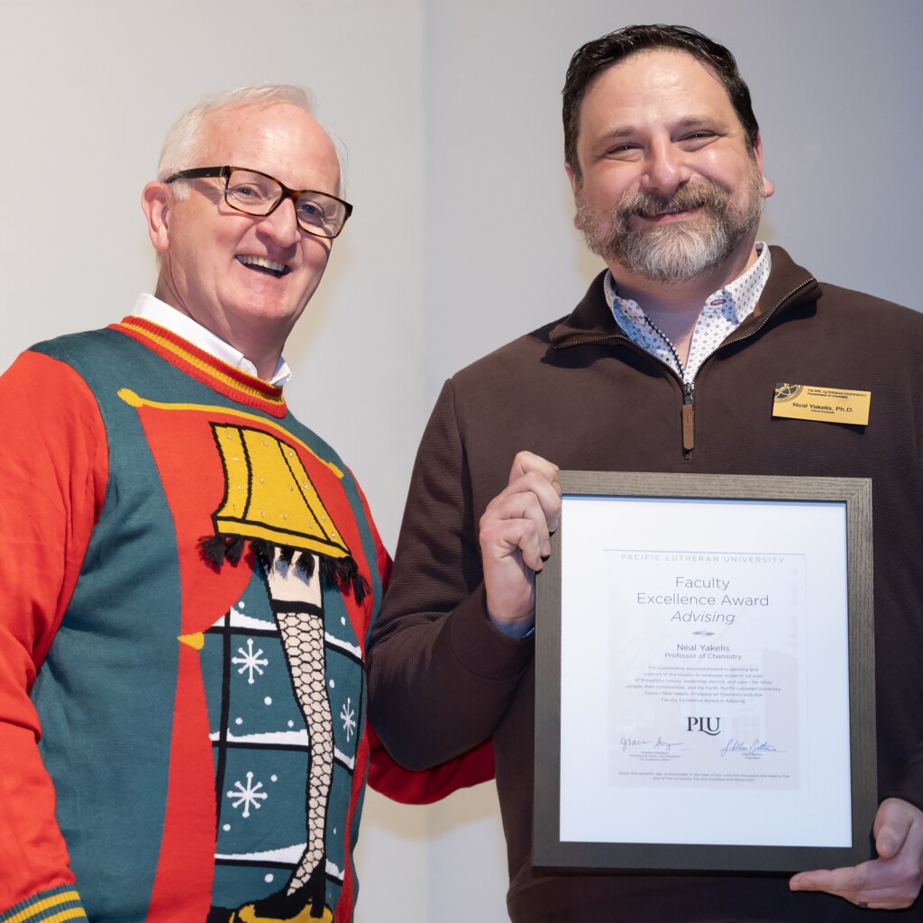 This year, we honor Dr. Neal Yakelis, Professor of Chemistry, whose comprehensive, compassionate, and personalized approach to advising has profoundly shaped the academic and vocational journeys of countless students.