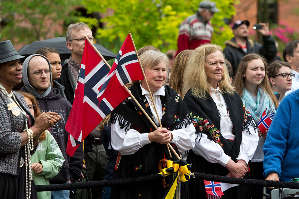 By 11 a.m., music from Centennial Plaza fills the air; the crowd has filled the lawn; and the Norwegian advance team has arrived—along with a touch of brightness in the sky.